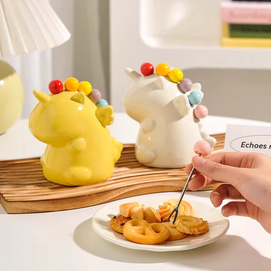 Colorful Ceramic Unicorn Fruit Fork Holder Set