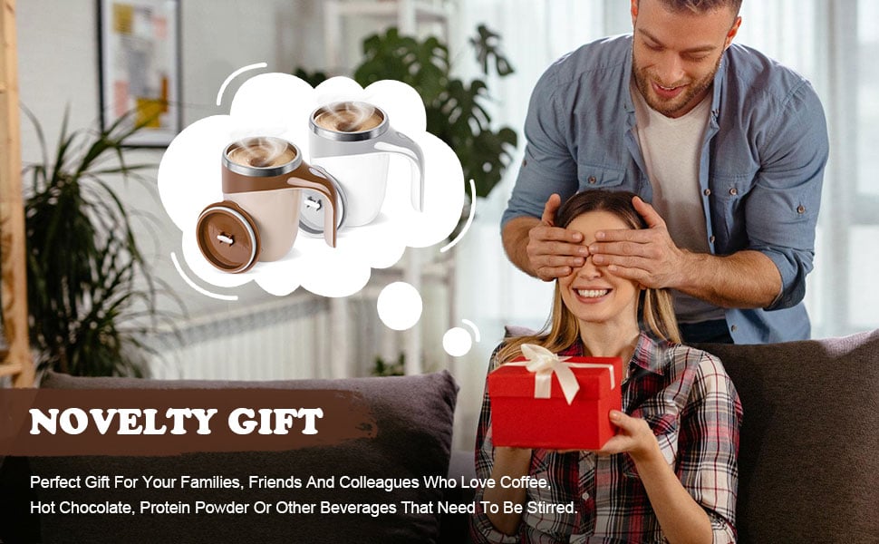 The self stirring mug can mix the liquid and powdered drinks evenly. It is very suitable for coffee powder, tea, chocolate powder, milk, protein shakes, lemonade, broth, and many other lightly mixed beverages that can be stirred.