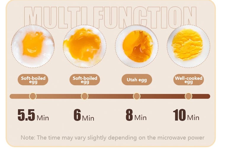 - Easy to use:Fill the pockets with water (make sure the water is above the hollow section to prevent nutrient loss), add eggs in them, depending on the yolk hardness you need, filter the excess water, and take out the prepared eggs.